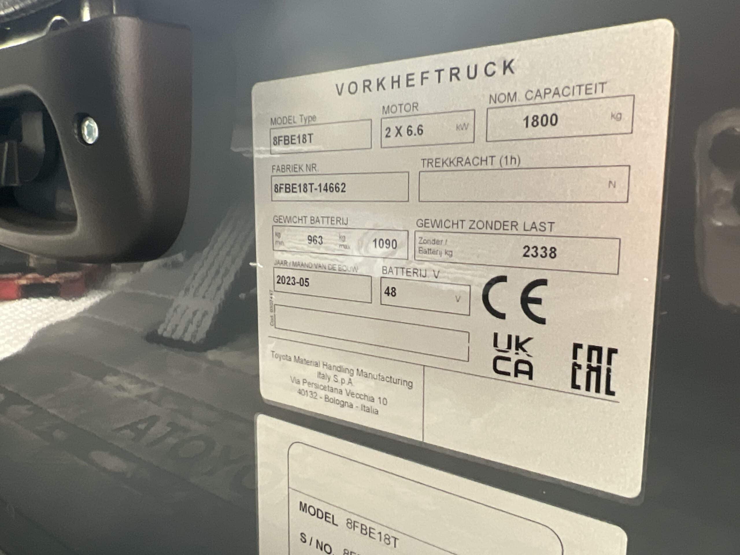TOYOTA 8FBE18T - Vorkheftruck Elektro
