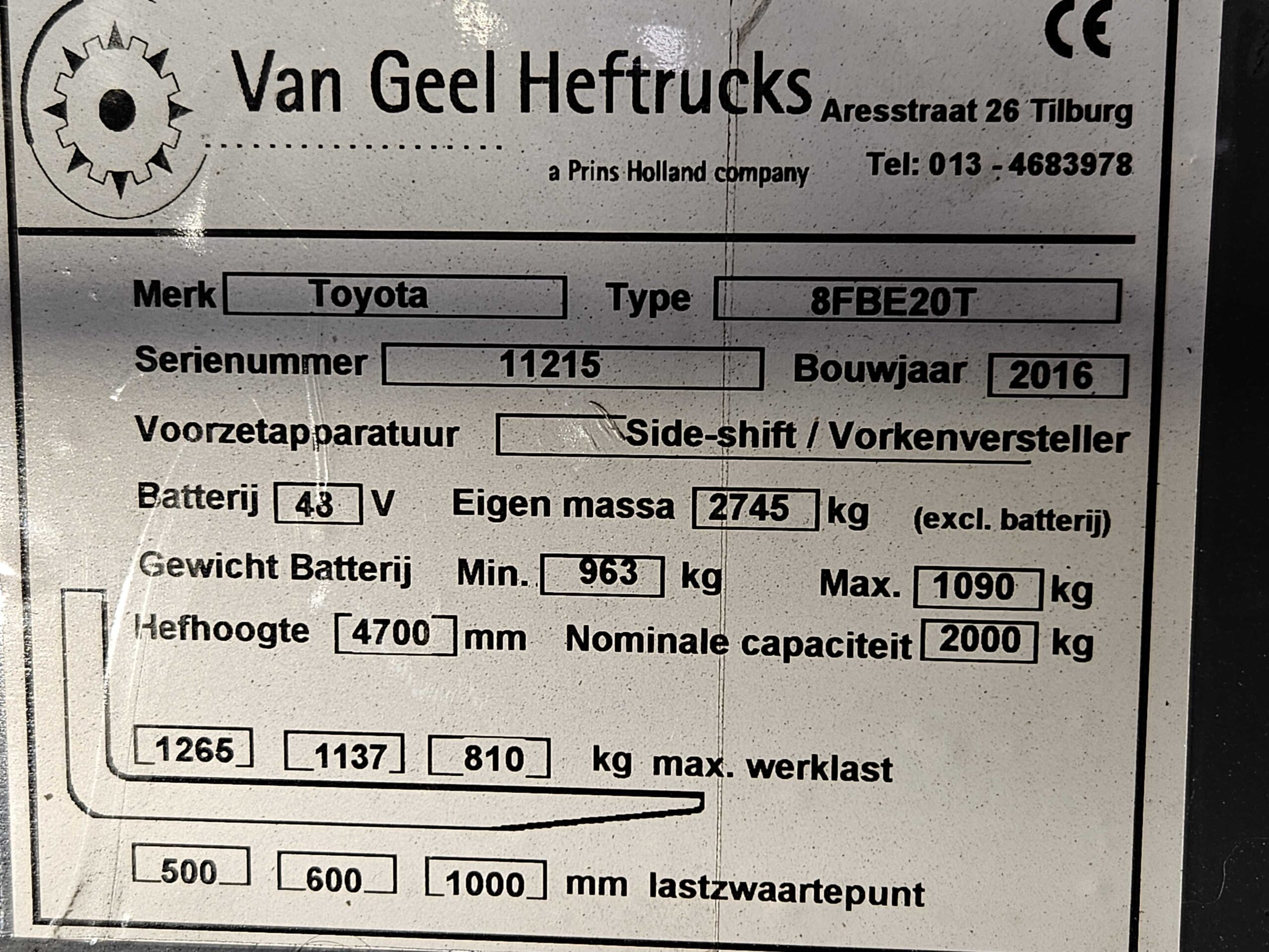 TOYOTA 8FBE20T - Vorkheftruck Elektro